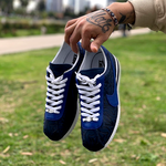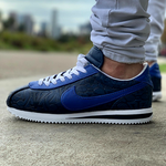 The Nike Cortez Basic Shoe is an updated version of Bill Bowerman's 1972 running classic which we diconstructed and rebuilt with Navy & Royal genuine leather. The Middle, Toe, and Back showcase JVL's stamped deboss pattern leather while the Heel, Swoosh, and Lace Guard make use of our Top Grain Royal Leather.